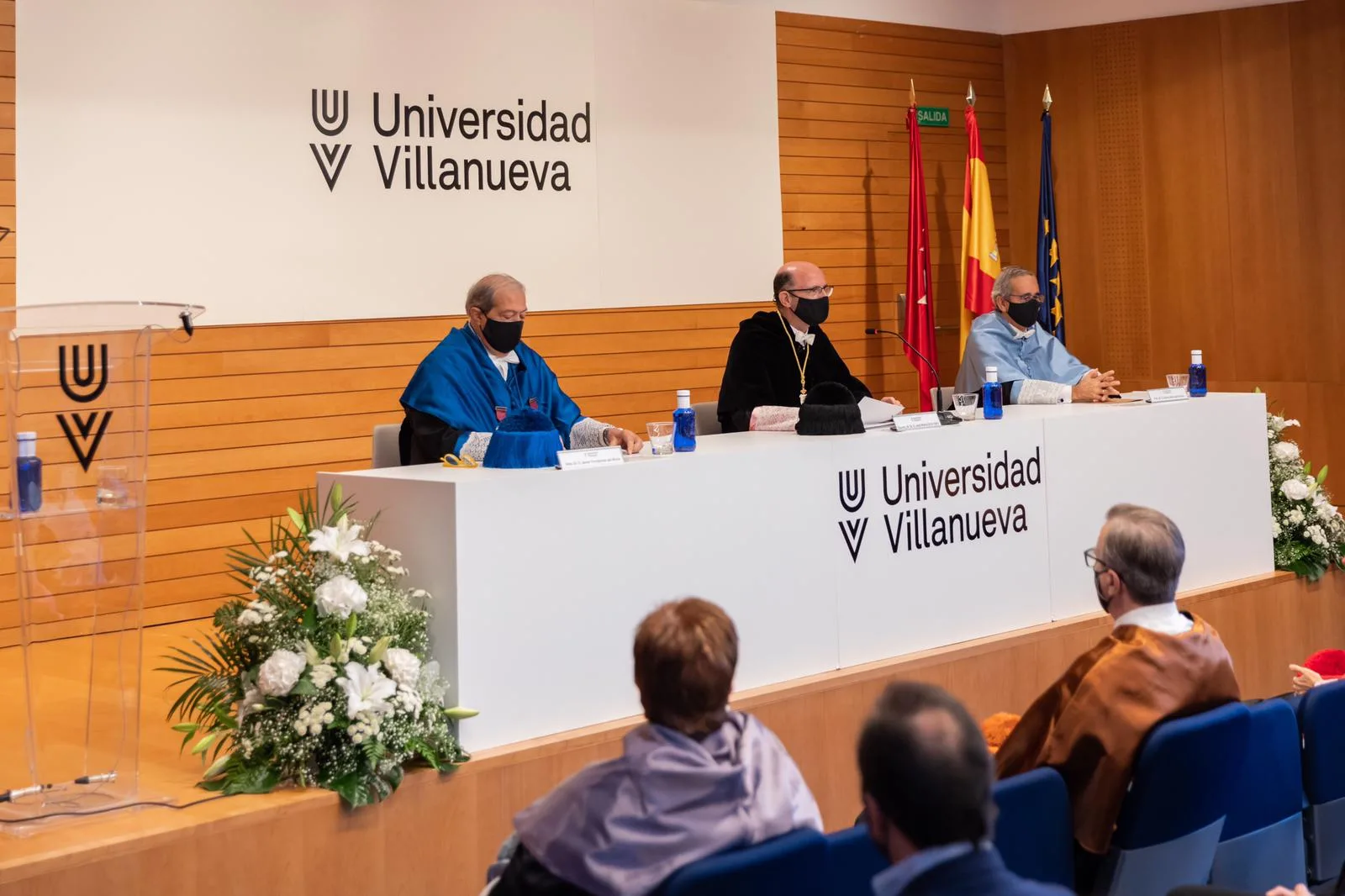 Al acto, celebrado en el Salón de Actos, ha asistido presencialmente una representación del claustro y de los alumnos. Se ha celebrado así con el aforo permitido y ajustándose a las normas marcadas por el Plan de actuación de la Universidad Villanueva ante la crisis sanitaria COVID19 (curso 2020-21), un completo protocolo que permitió a la universidad poner en marcha las clases de todas sus titulaciones de forma escalonada pero con la mayor normalidad posible el pasado 21 de septiembre.