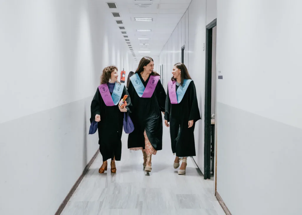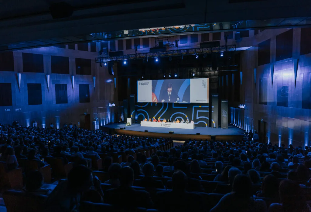 La jornada comenzó por la mañana con el acto de graduación de las titulaciones de grado, presidido por la rectora Carmen Fuente Cobo. El auditorio se llenó para celebrar a los nuevos egresados, acompañados por el claustro docente y representantes institucionales.
