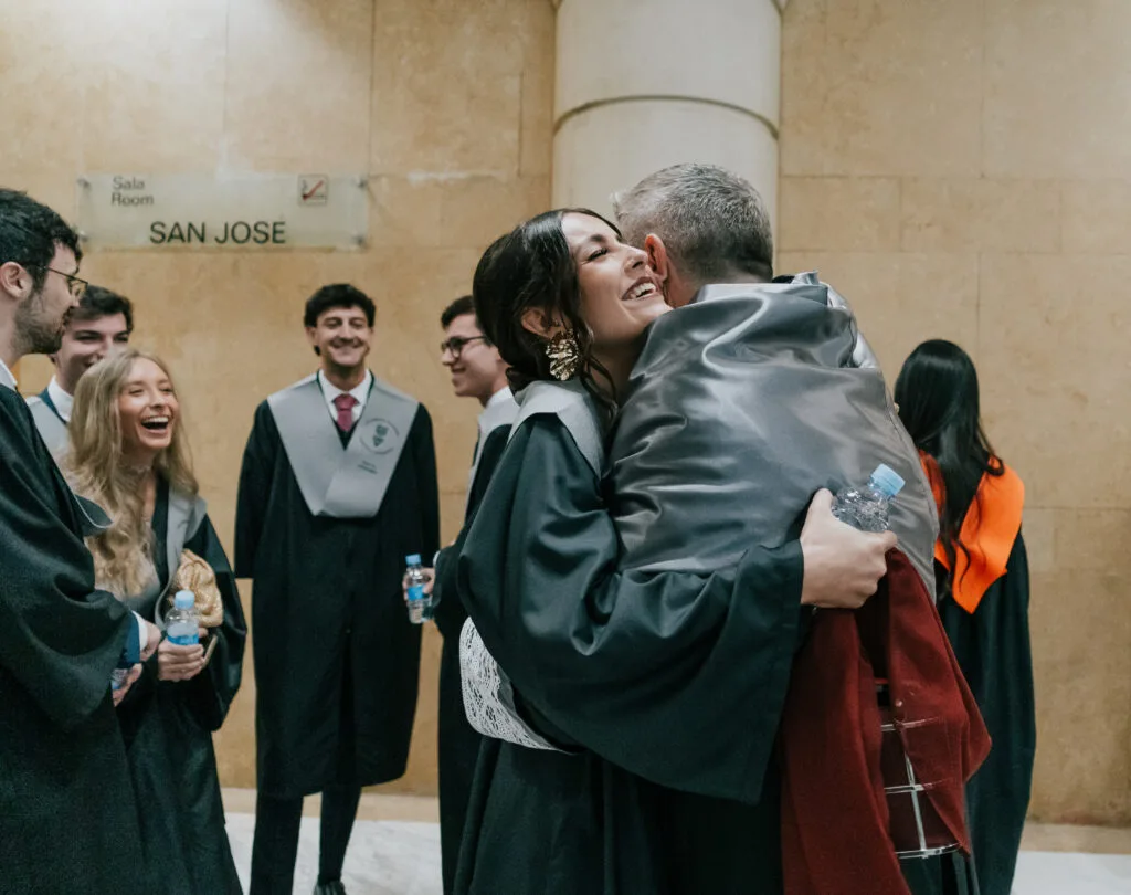 Por la tarde tuvo lugar la graduación de los programas de posgrado, presidida por D. Alberto Ruiz-Gallardón, exalcalde de Madrid y exministro de Justicia. Su lección magistral, titulada “Vosotros, España y Europa”, apeló al compromiso de las nuevas generaciones con el futuro de nuestro país y del continente, a través del liderazgo profesional, el respeto a los valores democráticos y la implicación activa en la sociedad.