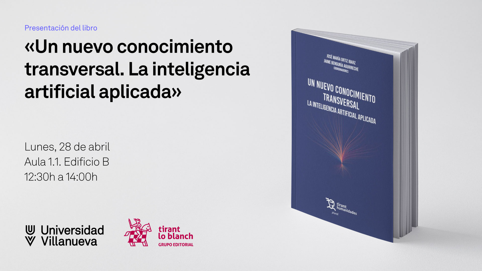 El lunes, 28 de abril tendrá lugar la presentación del libro «Un nuevo conocimiento transversal. La inteligencia artificial aplicada», Editorial Tirant Lo Blanch, coordinado por los profesores de la Universidad Villanueva José María Ortiz Ibarz y Jaime Benguría Aguirreche.
