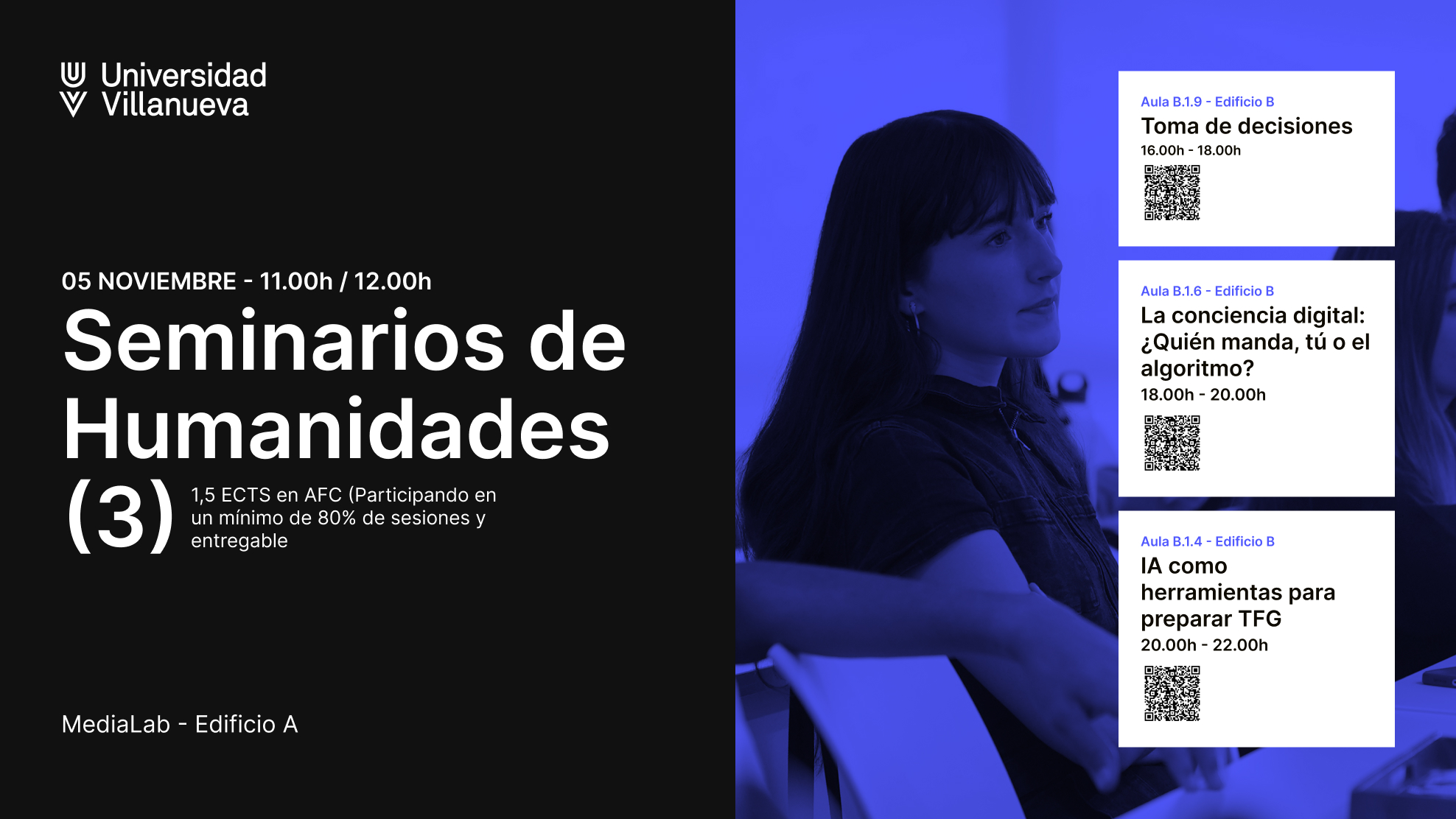 La Universidad Villanueva celebrará un nuevo ciclo de Seminarios de Humanidades con tres cursos gratuitos abiertos a toda la comunidad universitaria y amigos.