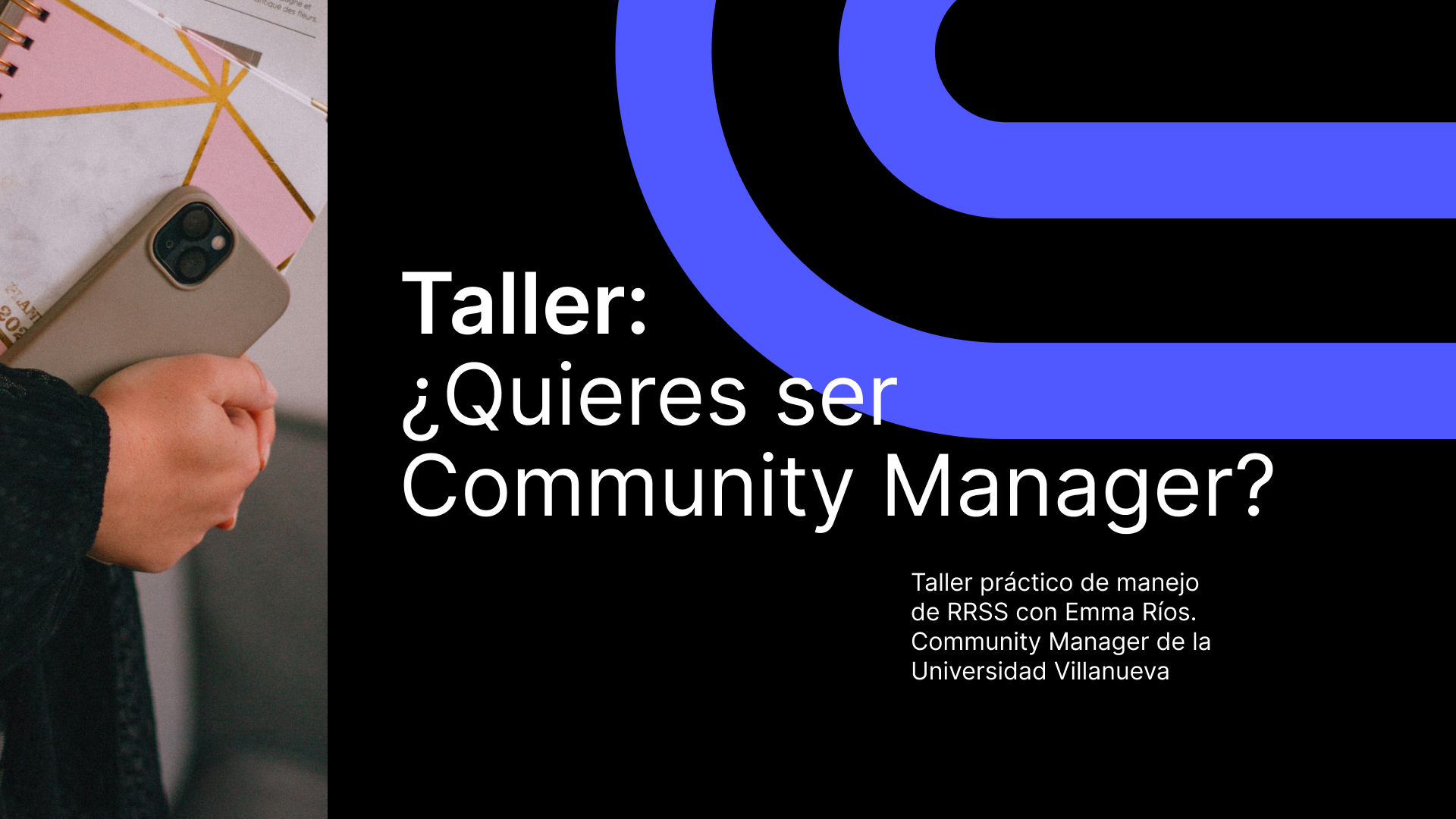 Taller práctico de manejo de RRSS con Emma Ríos, Community Manager de la Universidad Villanueva. Aula B.2.1, Edificio B, 12:00h