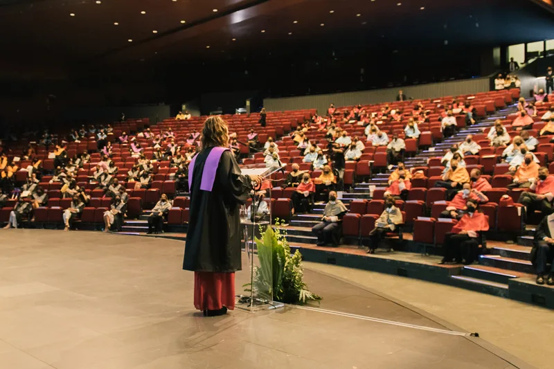 Otro momento emotivo en ambos actos fue el discurso de los alumnos: María Marcos (Derecho), Sara Rojas (ADE), Enrique Serrano (Educación), Álvaro Vargas (Comunicación), Camila Arias (Psicología) y Beatriz de Pablo (Comunicación y Gestión de Moda) fueron los encargados de representar a los alumnos de grado, y María Collantes (Máster de Acceso a la Abogacía) y Jesús Vidal (Máster en Formación del Profesorado) a los de posgrado.